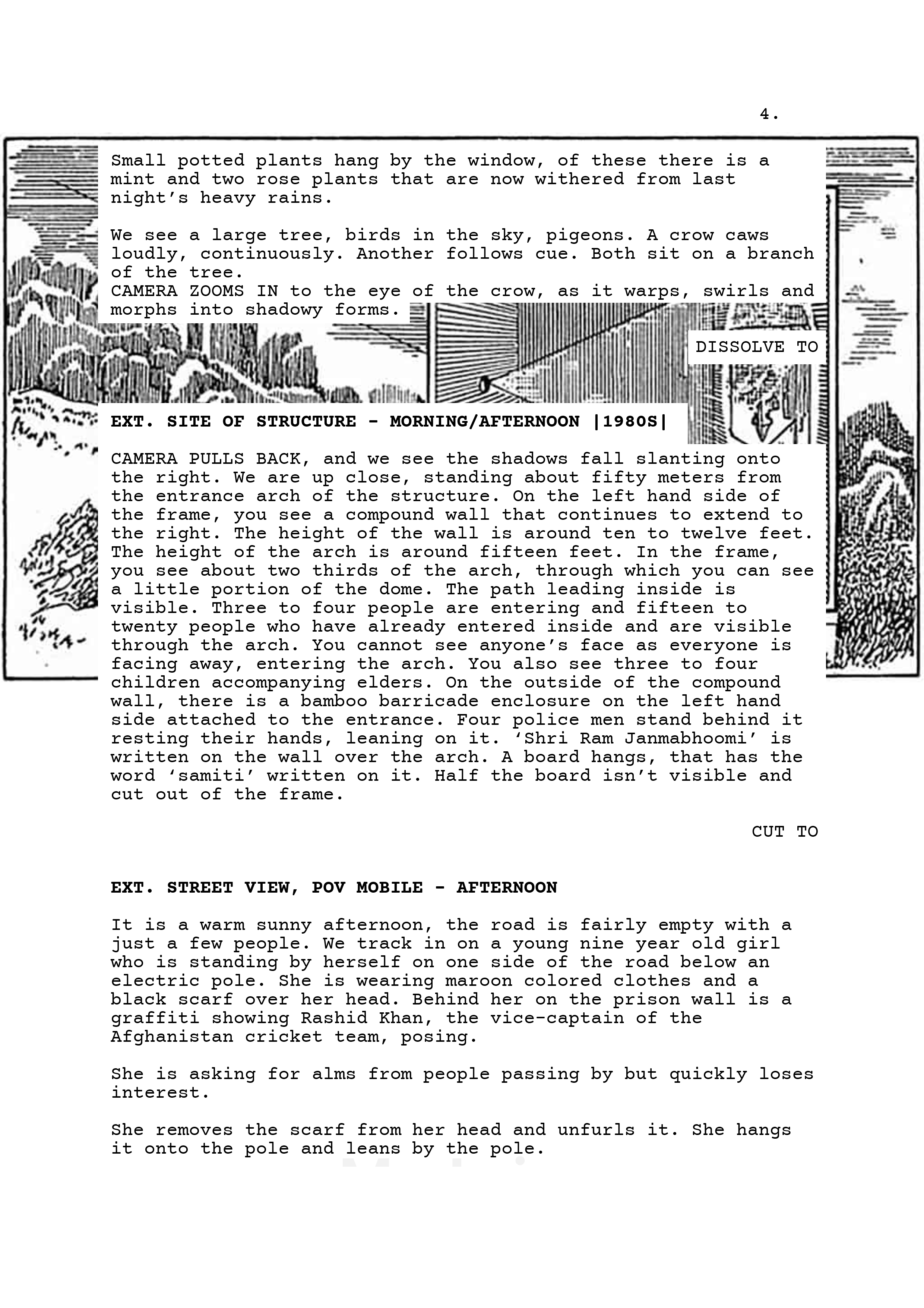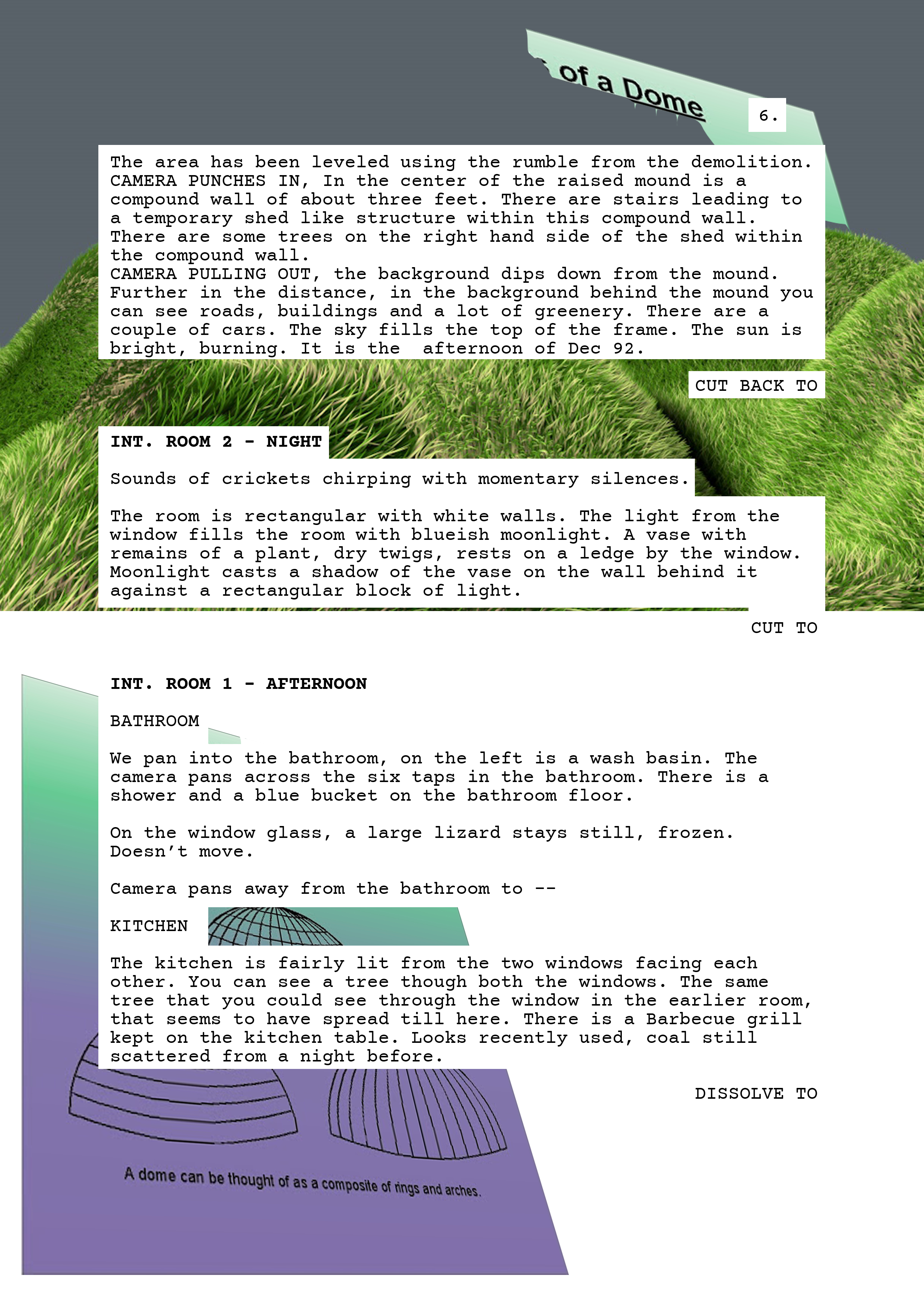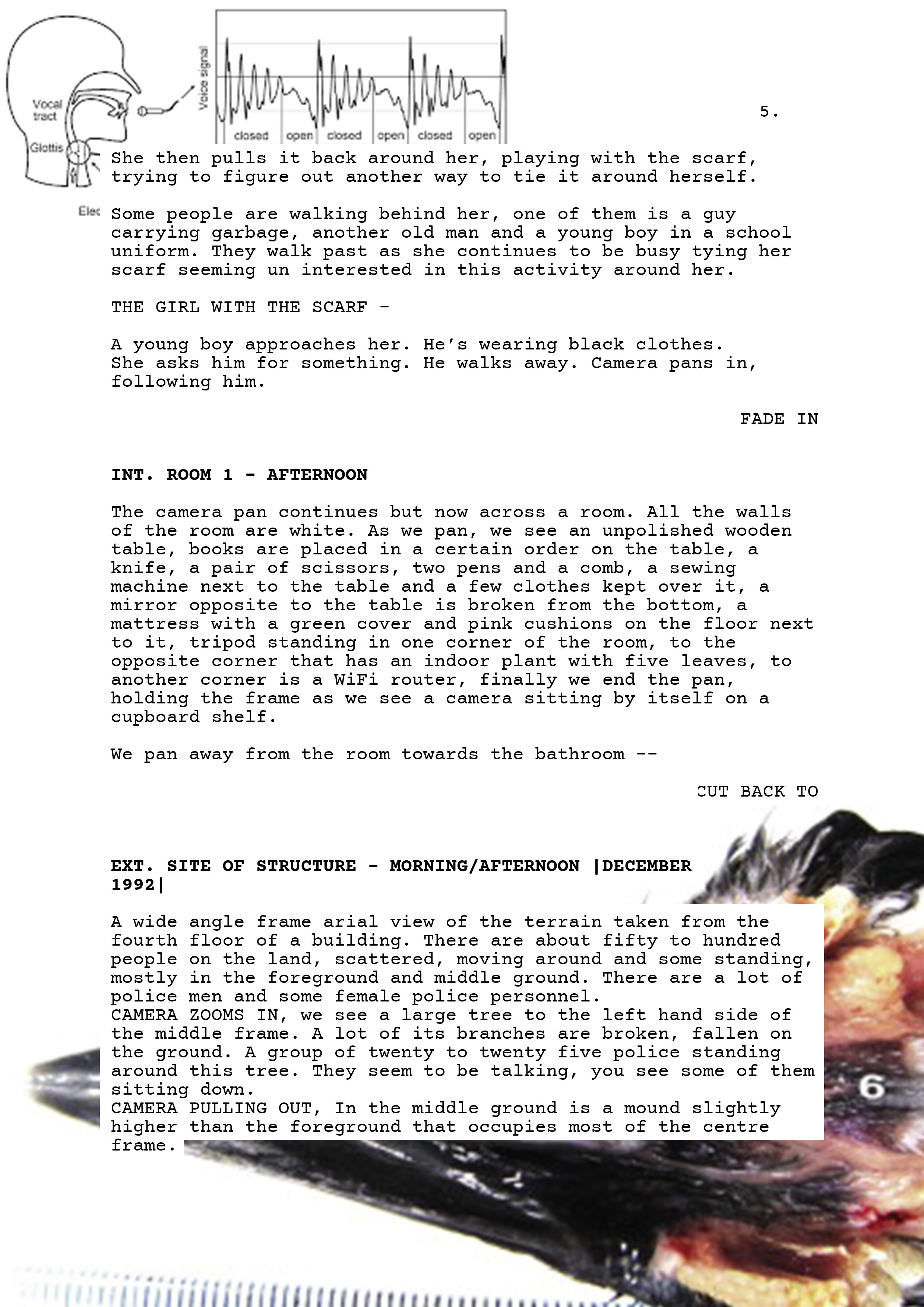 Brief Description - A digital collaboration brings together artists Arshi Irshad Ahmadzai, Sanket Jadia, Manjot Kaur, Salik Ansari, and Tonoy Sharma, on the invitation of Amshu Chukki, in partnership with Avid Learning, to forge an experimental screenplay that challenges conventional narrative boundaries. The work assembles a mosaic of disparate fragments—ranging from archival imagery of the demolished Babri Masjid, a voyeuristic view from a Kabul balcony, digitally rendered environments, and the intimate mise en scène of an artist’s friend’s studio, to raw camera log data, meticulous garden measurements, and reflective lockdown diary entries.