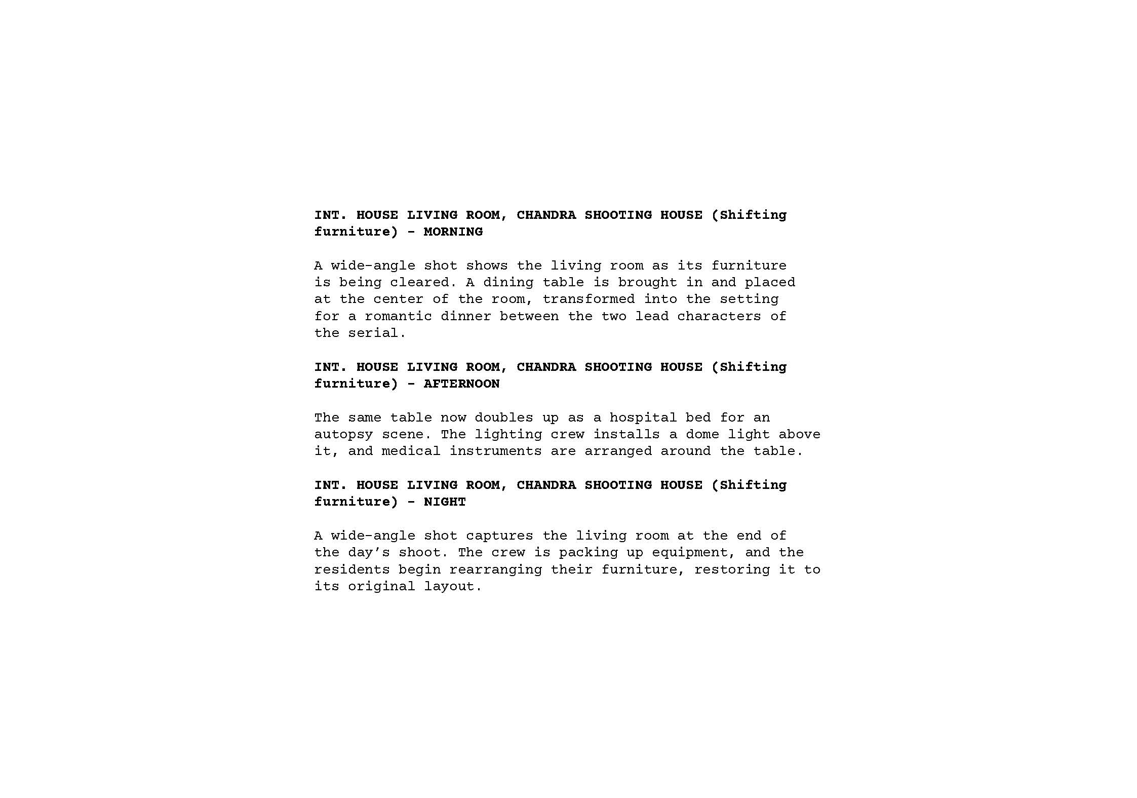 In these homes, I witnessed a strange folding of cinema into everyday life. The resident families aren’t just passive hosts—they begin to speak the language of cinema. The owner advises where to place the camera. A daughter might find herself cast as a child actor. Over time, some families come to sustain this as a business, leasing out their homes for multiple productions. In some cases, the house even adopts the name of the series once filmed there—becoming “the Milana house” or “the Kadambari house”—as fiction leaves its mark on the architecture. I became especially interested in the people who live within this recursion—inhabiting a space that is both home and set, private and staged—where daily life folds into cinematic staging, and the labour of film quietly reshapes how space is lived.